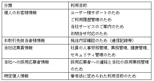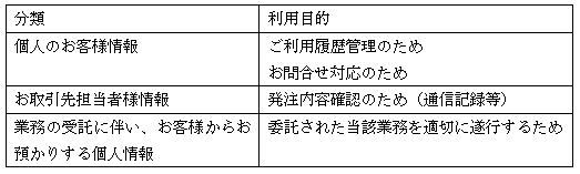 (2)前項以外の方法によって取得する個人情報の利用目的